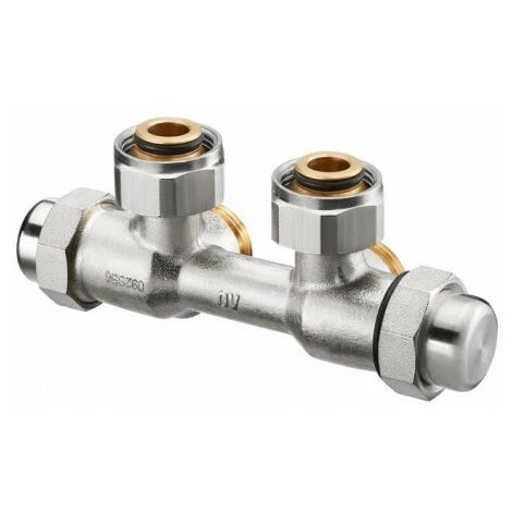 Robinets de raccordement avec Q-Tech pour la comparaison hydraulique automatique, étanche, étanche à plat, pour radiateurs avec garniture de vanne intégrée. Exécution : laiton nickelé, marque : OVENTROP. Exécution : laiton nickelé, marque : OVENTROP. Exécution : laiton nickelé, marque : OVENTROP