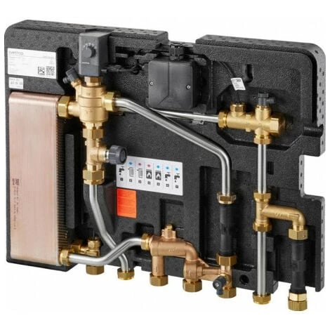 composé de transmetteurs de chaleur à panneaux, de soupape de régulation avec régulation intégrée de la pression différentielle et du débit, d’un servomoteur avec régulation intégrée de la température de l’eau potable, d’un capteur de débit et de température, d’un capteur de débit et de température, d’un capteur de poussière, d’un connecteur pour compteurs de chaleur, d’un raccord pour compteurs d’eau, de raccordement pour les capteurs de température de préchauffage M 10 x 1, de ventilation/vidange, de transfert de chaleur soudés en cuivre, de l’imperméabilisation complète sealix. Version: 12 l/min, marque: OVENTROP. Version: 12 l/min, marque: OVENTROP. Version: 12 l/min, marque: OVENTROP