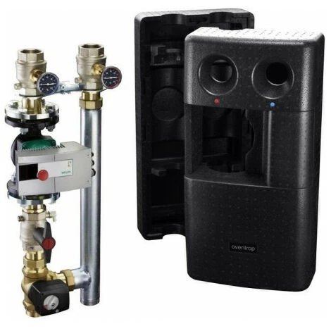 avec tri-mélangeur et moteur de réglage, avec isolation thermique universelle et modulaire, pour le montage des chaudières aux systèmes de canalisation, composé de: 1 robinet à bille d’avant avec thermomètre et vanne de vidange/lave-vaisselle, 1 robinet de boucle arrière avec soupape de blocage intégrée, thermomètre et soupape de vidange/évier, support, 1 robinet à bille de pompe avec soupape de vidange/lave-vaisselle, mélangeur triple avec moteur de réglage (adapté aux règlements habituels de la chaudière), conduite de retour, isolation thermique. Version: avec pompe Wilo Stratos 40/1-8, marque: OVENTROP. Version: avec pompe Wilo Stratos 40/1-8, marque: OVENTROP. Version: avec pompe Wilo Stratos 40/1-8, marque: OVENTROP