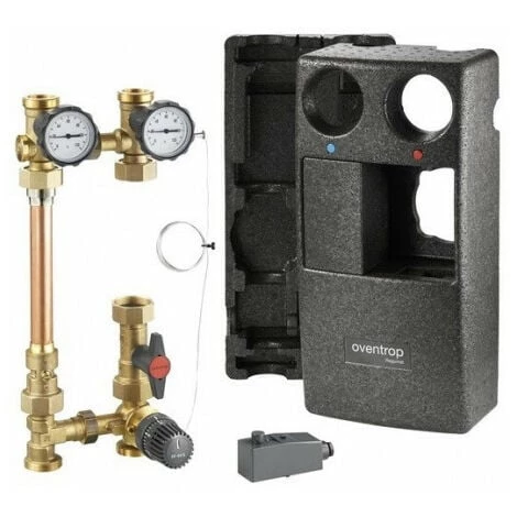 un ensemble de règles fixes pour la régulation de la température d’avance et la limitation dans les systèmes combinés de chauffage par sol radiateur. la température d’avance est réglée par une soupape à trois voies, associée à un régulateur de température équipé d’un capteur submersible, d’une longueur de pompe de 180 mm et d’un robinet à billes supplémentaire devant la pompe de réglage: 20-50 °C, distance entre la marche avant et la marche arrière: 125 mm, composé de: dispositif de verrouillage à 2 robinets à billes et 2 thermomètres (sans dispositif de débordement) et raccordement pour les plongeurs, Régulateur de température avec capteur submersible, tuyau de bride avec soupape de verrouillage, soupape mixte à trois voies, régulateur de température électronique, pompe (moulage gris), robinet à billes de pompe, isolation thermique. Exécution: sans pompe, marque : OVENTROP. Exécution: sans pompe, marque : OVENTROP. Version : sans pompe, marque : OVENTROP