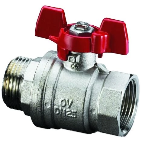 nickel à passage intégral, laiton, poignée de papillon en métal, plage de température: -10 à +100 ° C, d’une part, AG, d’autre part IG