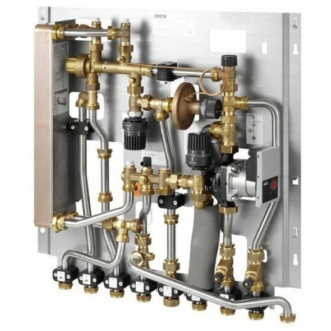 avec circuit de chauffage mixte et sortie à haute température Pompe Wilo Yonos Para RS 15/1-6 RKA, profondeur de construction 110 mm Version composée de: régulateur de volume proportionnel, régulateur de température thermostatique, capteur de saleté, pass pour compteurs de chaleur, pass pour compteurs d’eau froide, soupape de zone pour la régulation du circuit de chauffage, régulateur de pression différentielle, aération, vidange. Exécution: gamme de puissance 1, 12 l/min, marque: OVENTROP. Exécution: gamme de puissance 1, 12 l/min, marque: OVENTROP. Exécution: gamme de puissance 1, 12 l/min, marque: OVENTROP